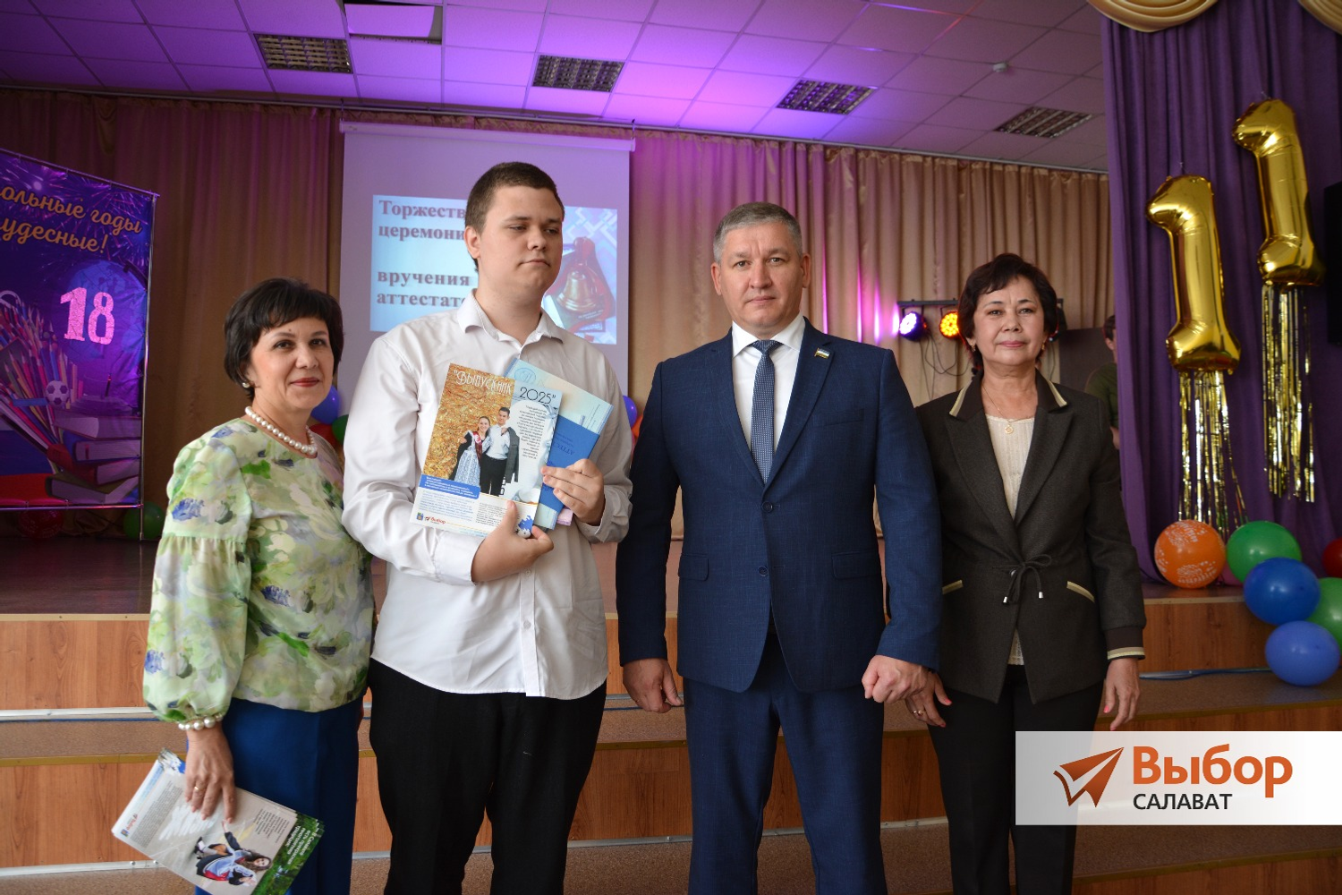 В 2025 году продолжилась реализация проекта «Салават без границ». А это значит, что выпускники, разлетевшись по вузам большой страны, останутся на связи с родным городом, получая каждую пятницу газету «Выбор» на электронную почту. Одними из первых подарок получили выпускники школы № 18. Председатель Городского совета Алексей Соболев лично вручил каждому из них долгожданный аттестат и памятный спецномер «Выпускник 2025».