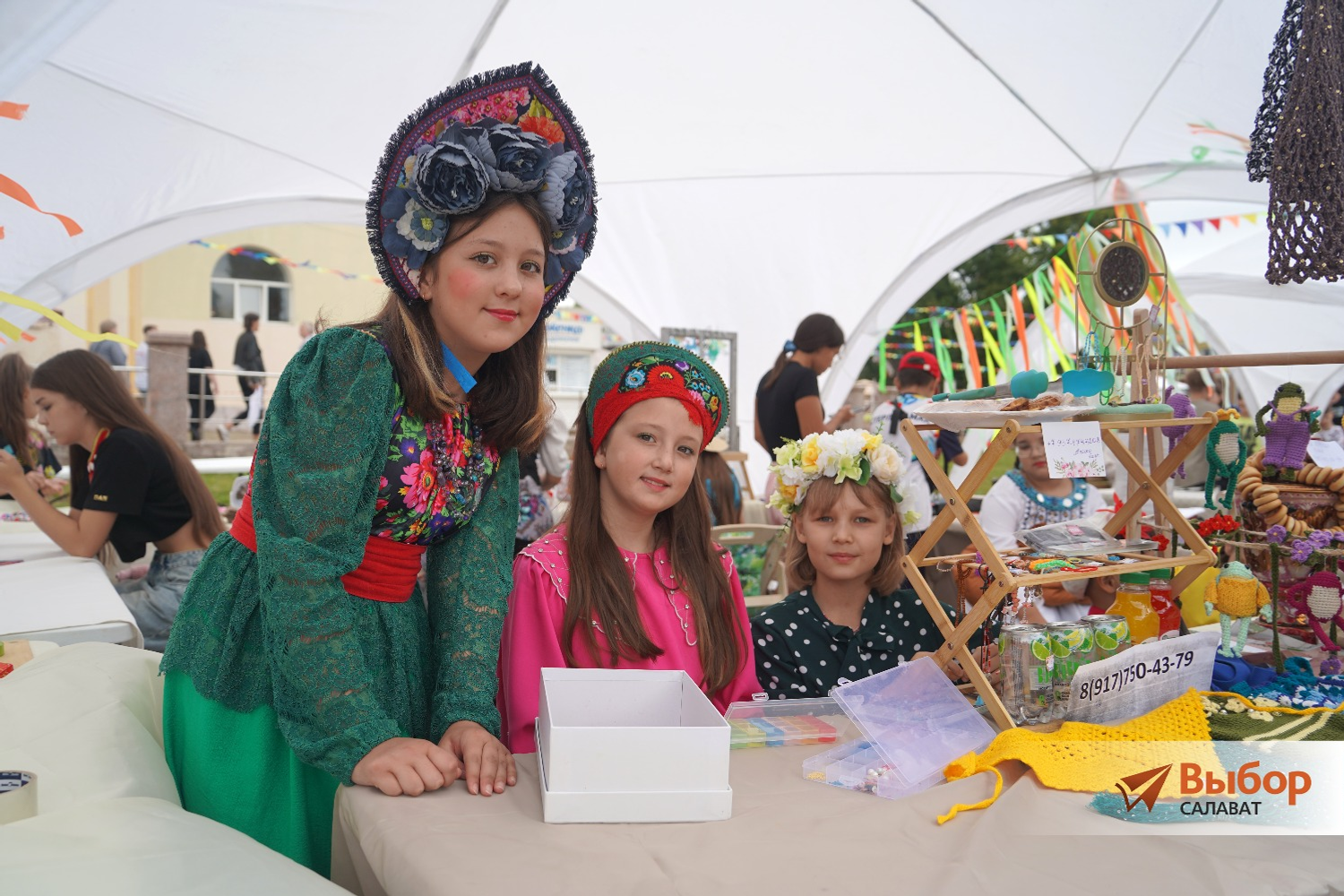 На отдельной площадке расположились юные мастера, которые предложили гостям фестиваля свои работы. Мальчишки и девчонки подготовились к празднику основательно — даже костюмы яркие подобрали!