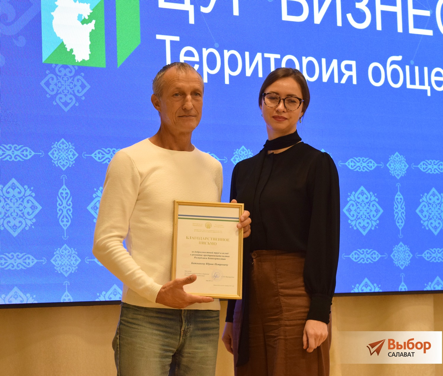 Встреча началась с приятных моментов. Почетными грамотами и благодарственными письмами Министерства предпринимательства и туризма республики наградили девять салаватцев: Алексея Новинькова, Юрия Кирилова, Елену Гузину, Юрия Батманова, Юлию Кондратьеву, Ильмиру Бадретдинову, Савелия Сергеева, Раиля Янгирова.