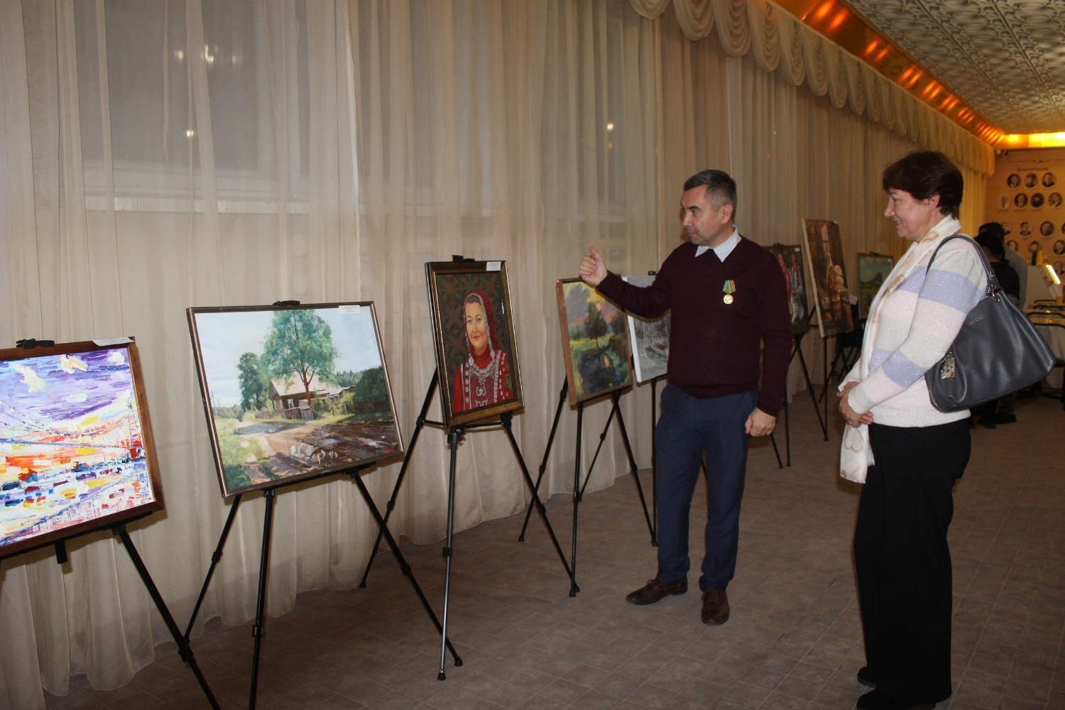 Перед спектаклем гости имели уникальную возможность познакомиться с экспонатами выставки Картинной галереи, посвященной Дню народного единства, которые воплощают дух многонациональной культуры Башкортостана и России: живописные панорамы города, природа республики, женщины в национальных костюмах.
