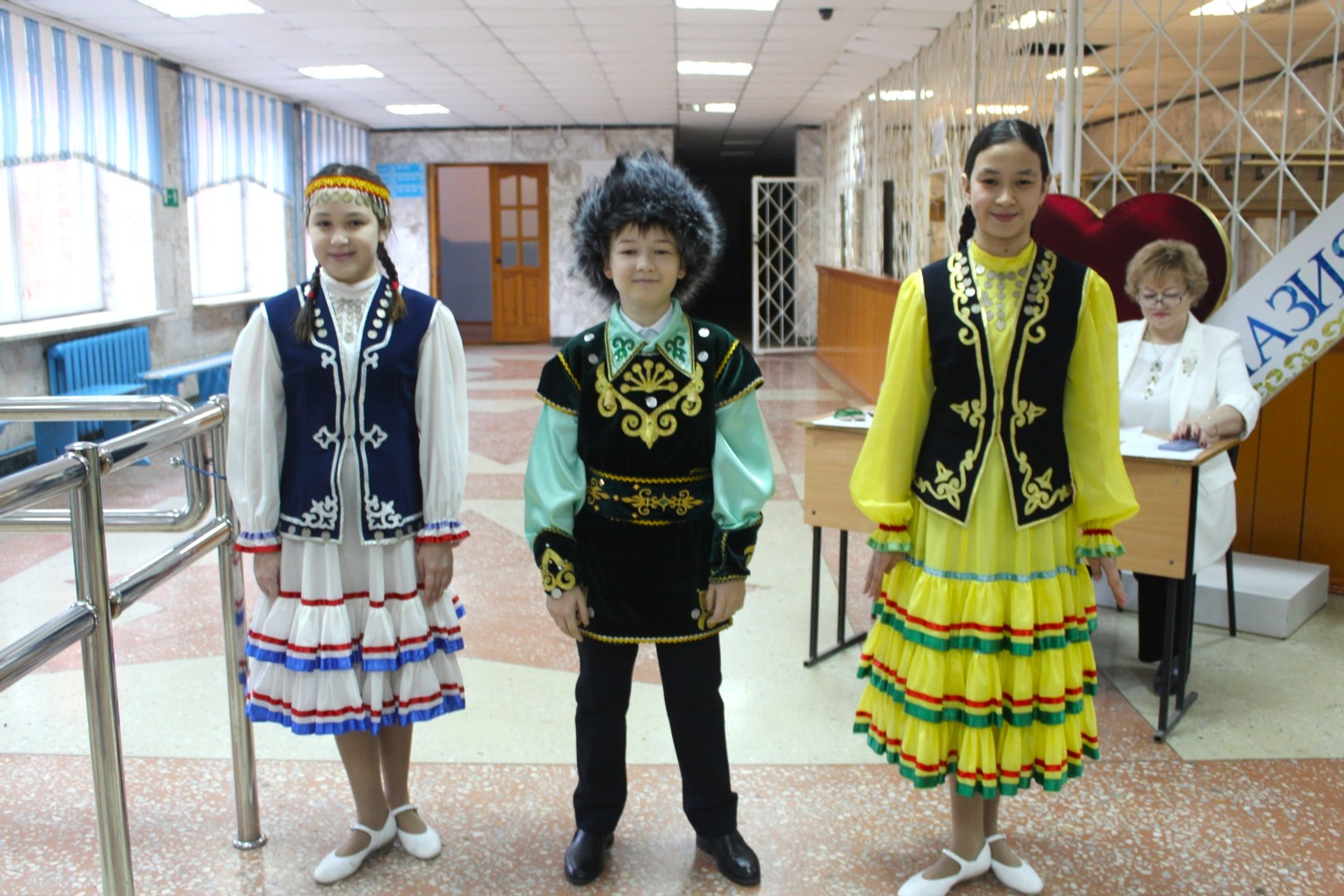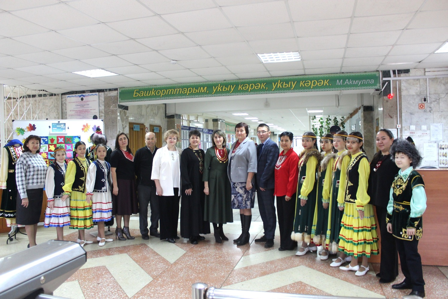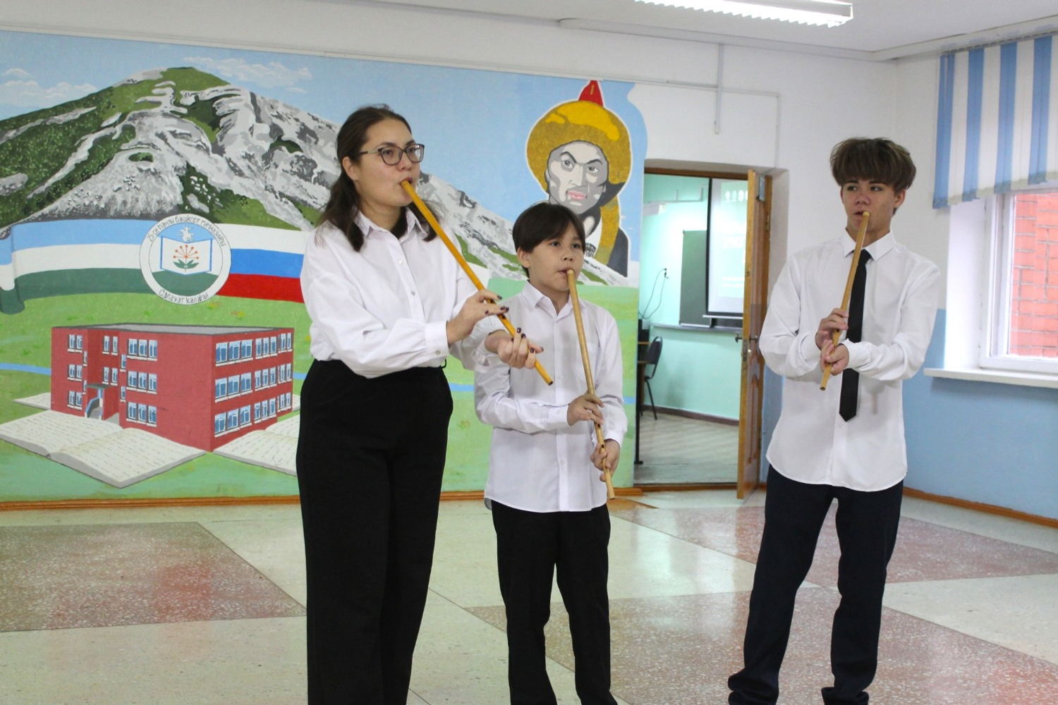 Гостей, которые пришли, чтобы написать этнографический диктант, встретили гимназисты в национальных костюмах. Они исполнили песни, станцевали и порадовали мелодиями курая.