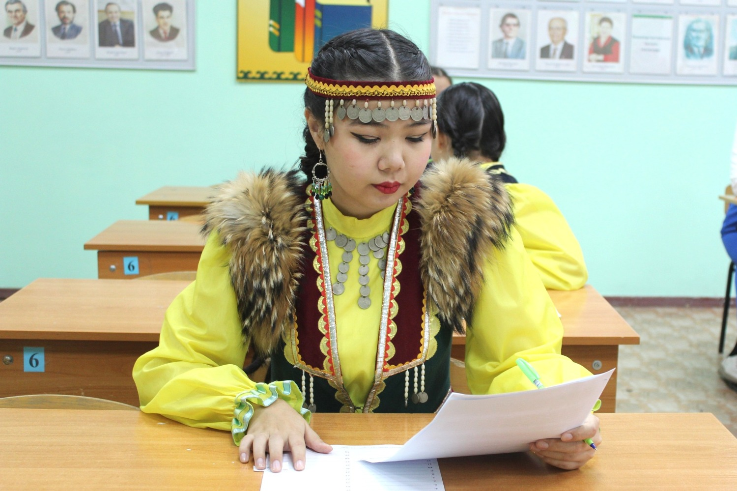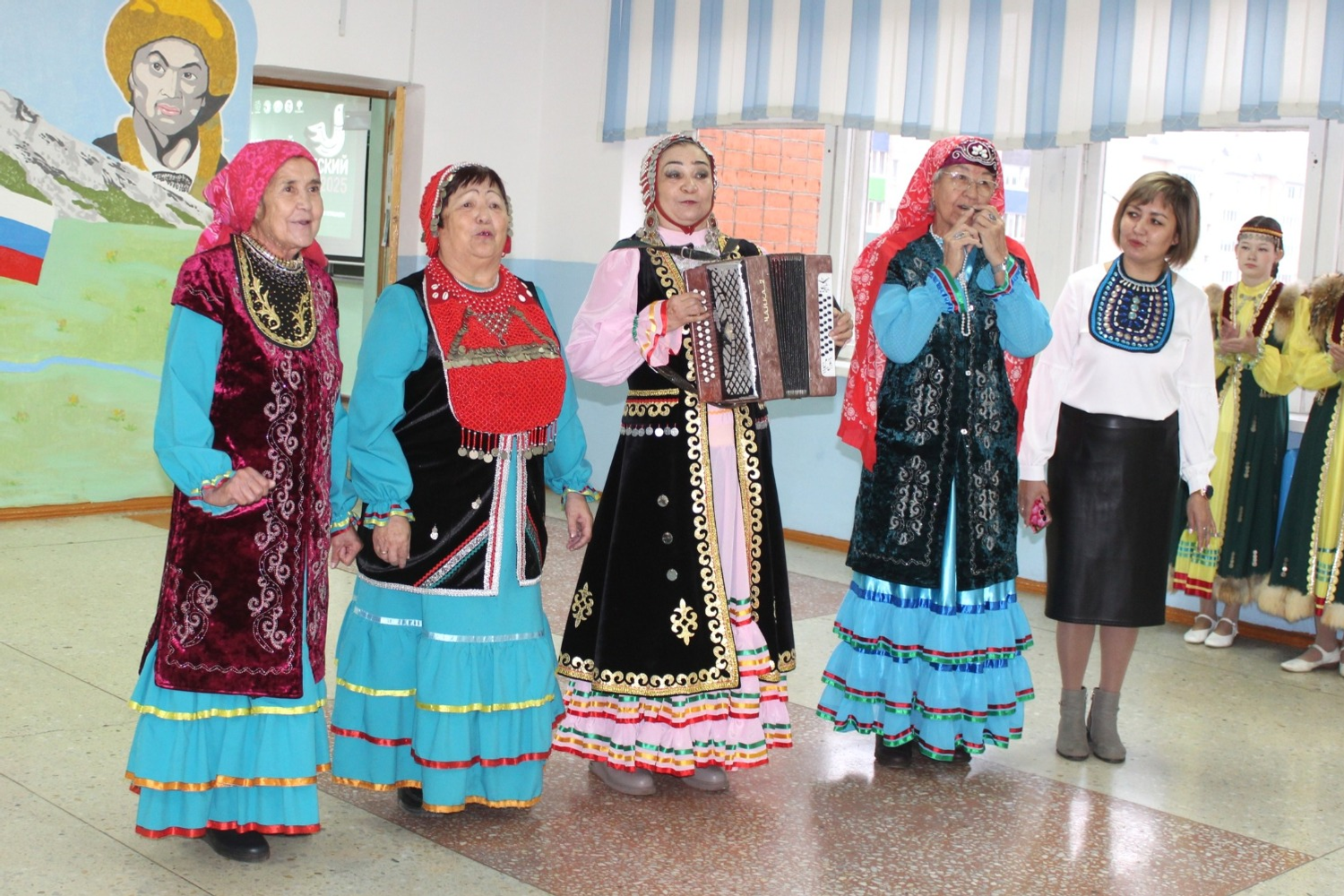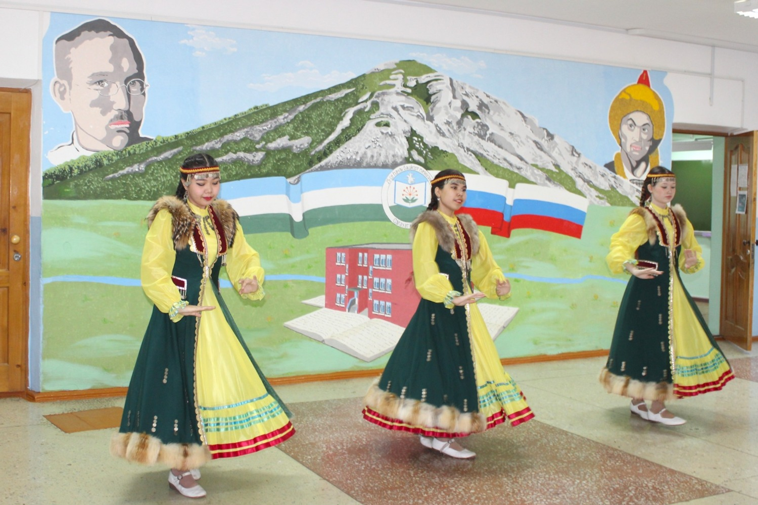 Гостей, которые пришли, чтобы написать этнографический диктант, встретили гимназисты в национальных костюмах. Они исполнили песни, станцевали и порадовали мелодиями курая.