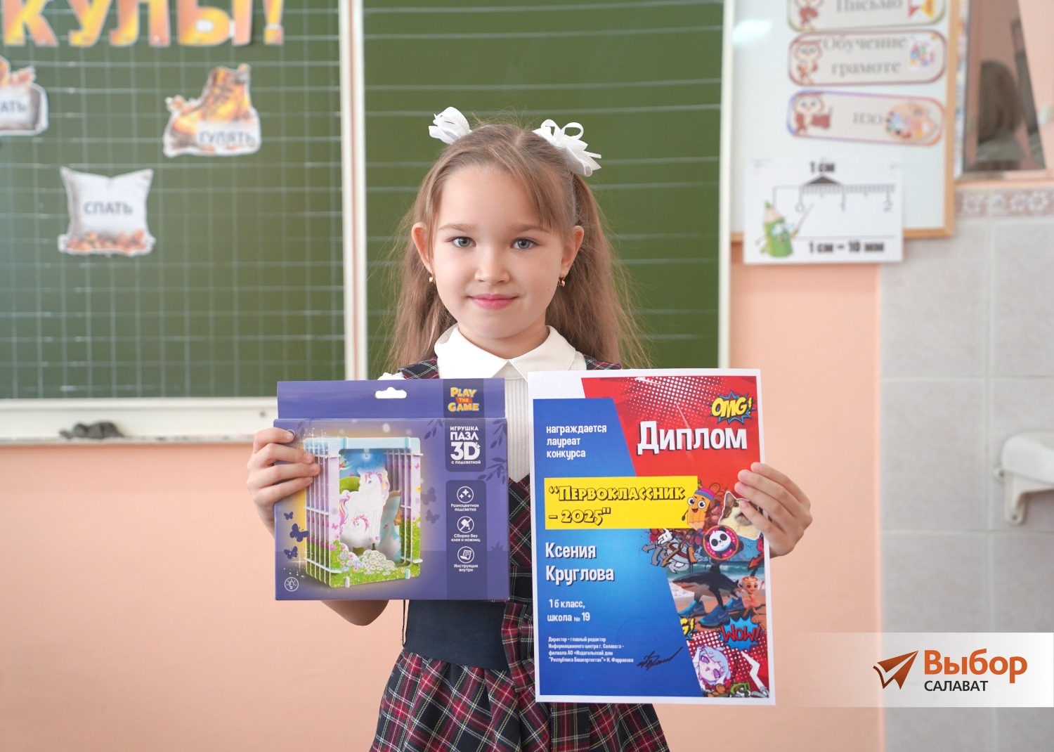 Ученица 1 «Б» класса школы № 19 Ксения Круглова — лауреат конкурса «Первоклассник – 2025». Девочке сейчас семь лет, совсем скоро исполнится восемь.