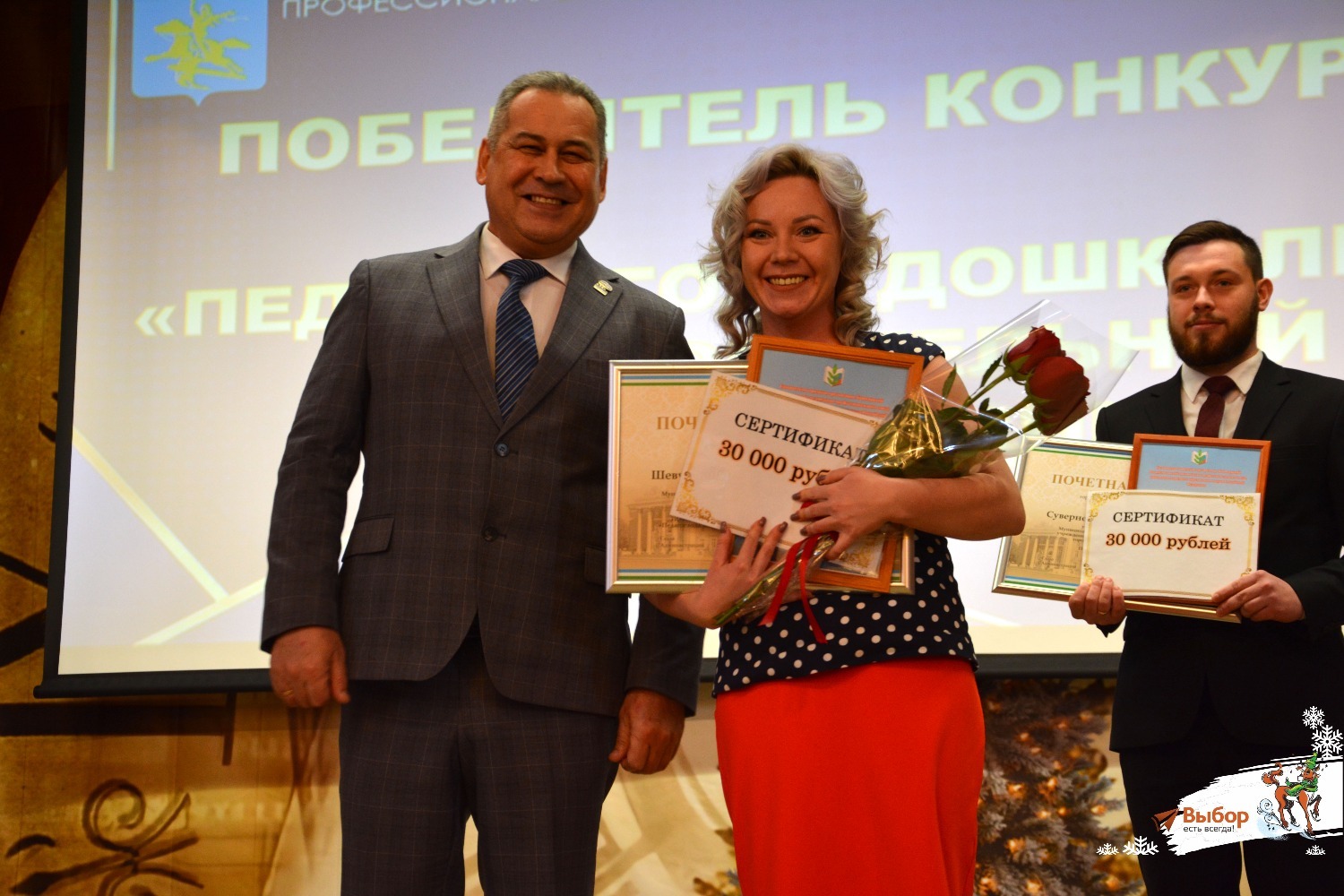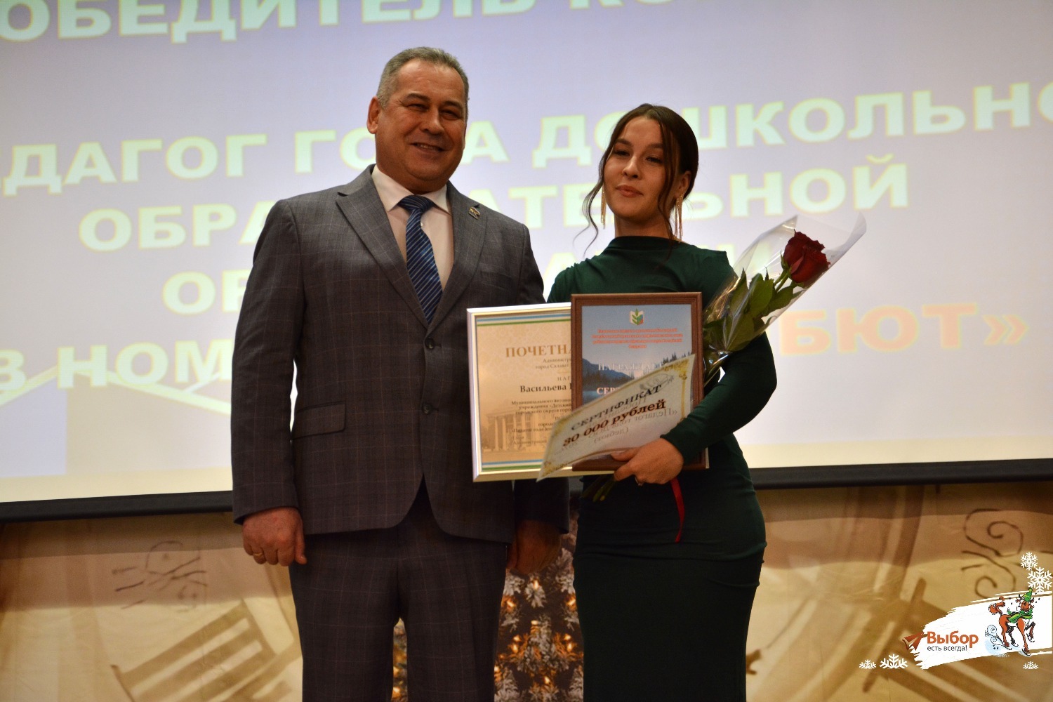 Марина Вишева провела церемонию награждения номинантов конкурсов. Победителем в номинации «Педагогическая надежда» конкурса «Молодой учитель года» стала учитель начальных классов школы № 22 Виктория Шаповалова.