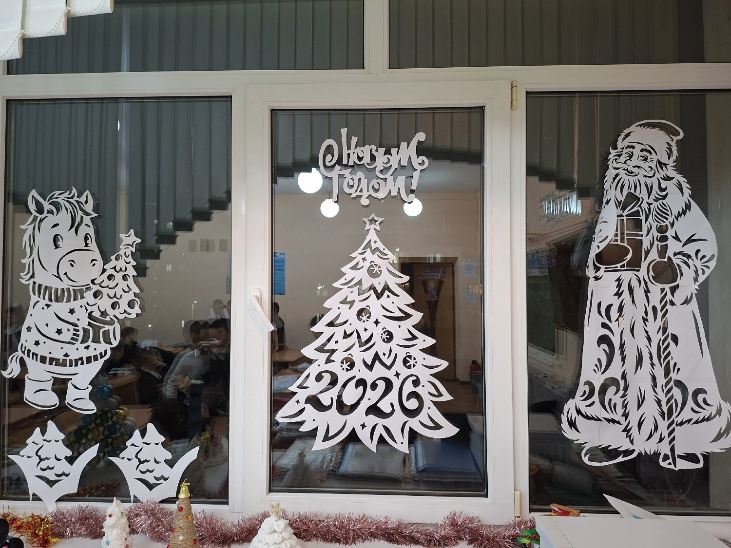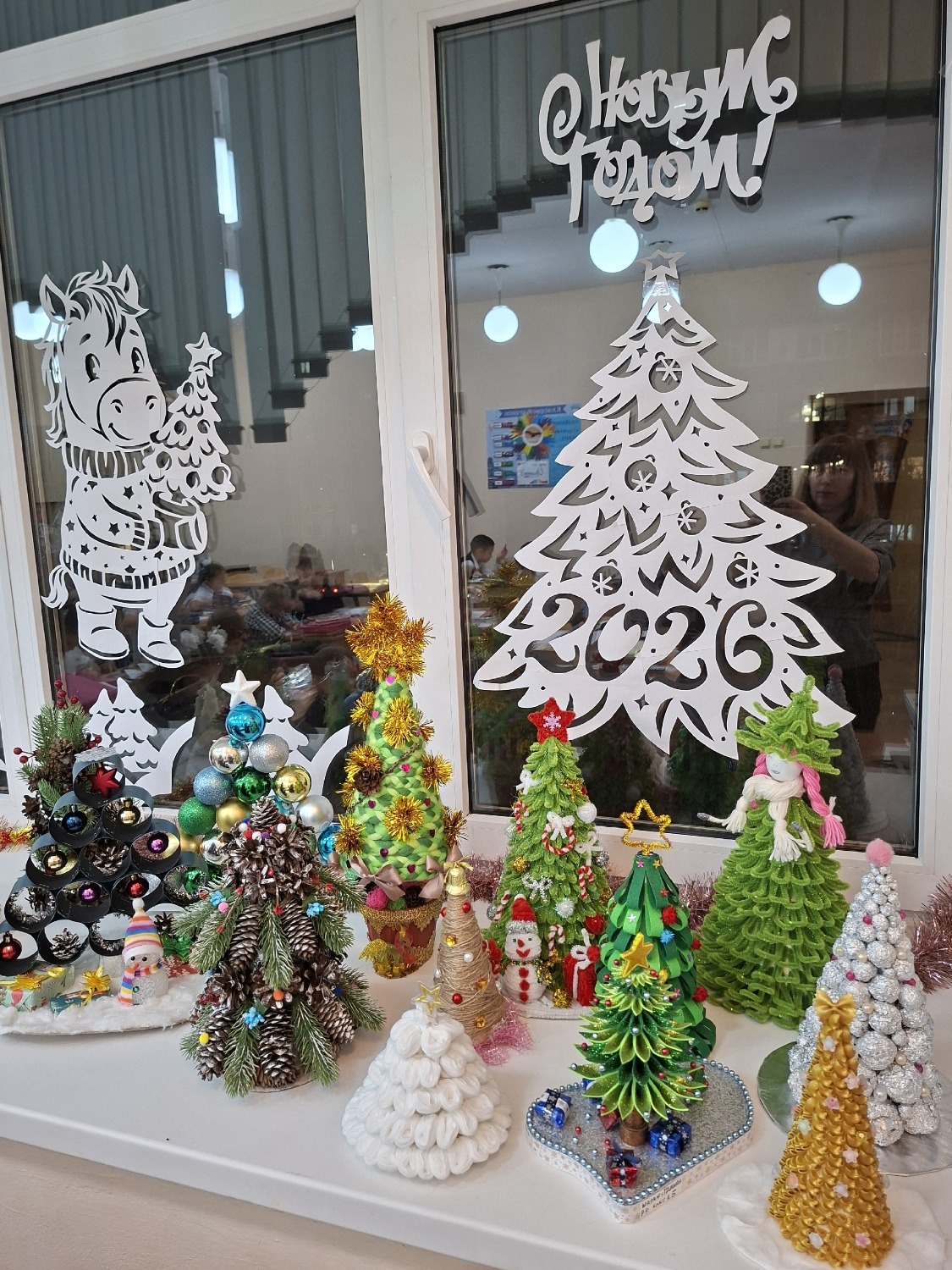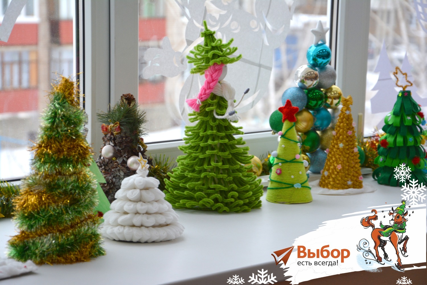 На конкурсных фотографиях были не только елочки, но и окна, украшенные вытынанками (узорами, вырезанными из бумаги), которые сделала мама первоклассника Ирина Моторина.