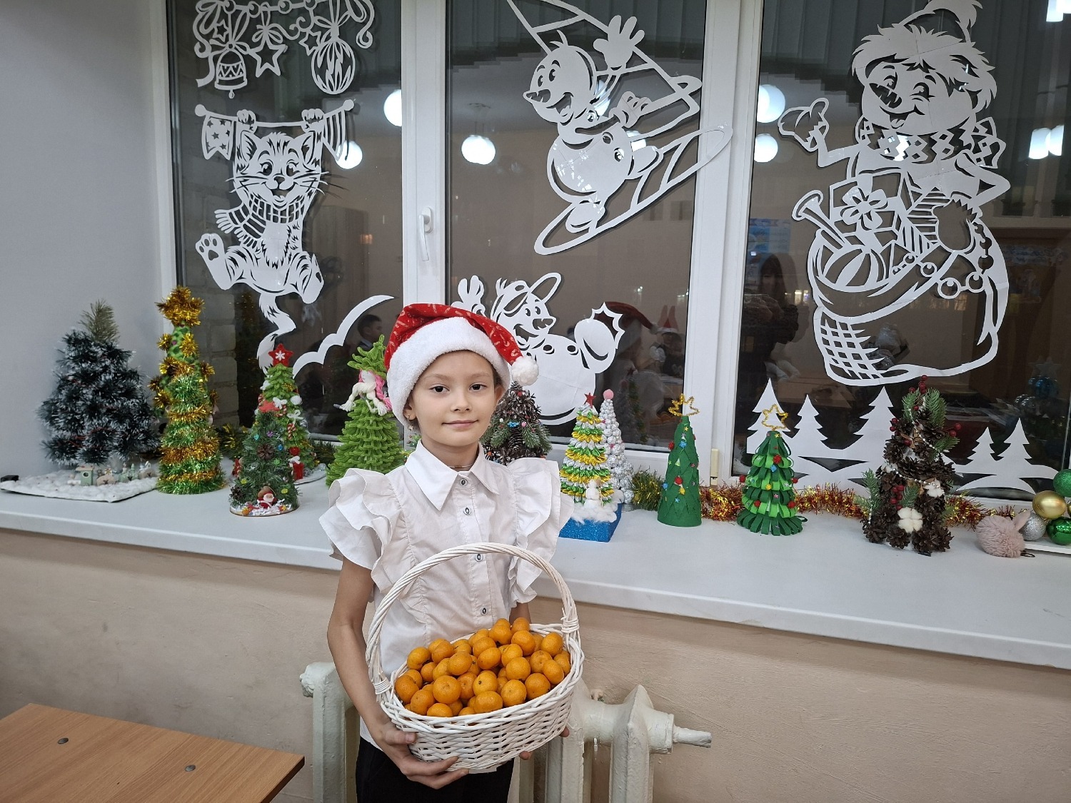 Приятно всех удивила юная Кира Лысенко: накануне Нового года девочка принесла в класс корзину мандаринов и угостила новогодним фруктом всех одноклассников.