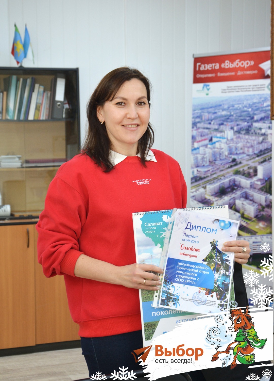 — Рада вручить вашу уже вторую награду! — отметила Надежда Фаррахова, вручая диплом лауреата конкурса «Салават новогодний», фирменную сумку и фирменный календарь «Салават – город чемпионов».