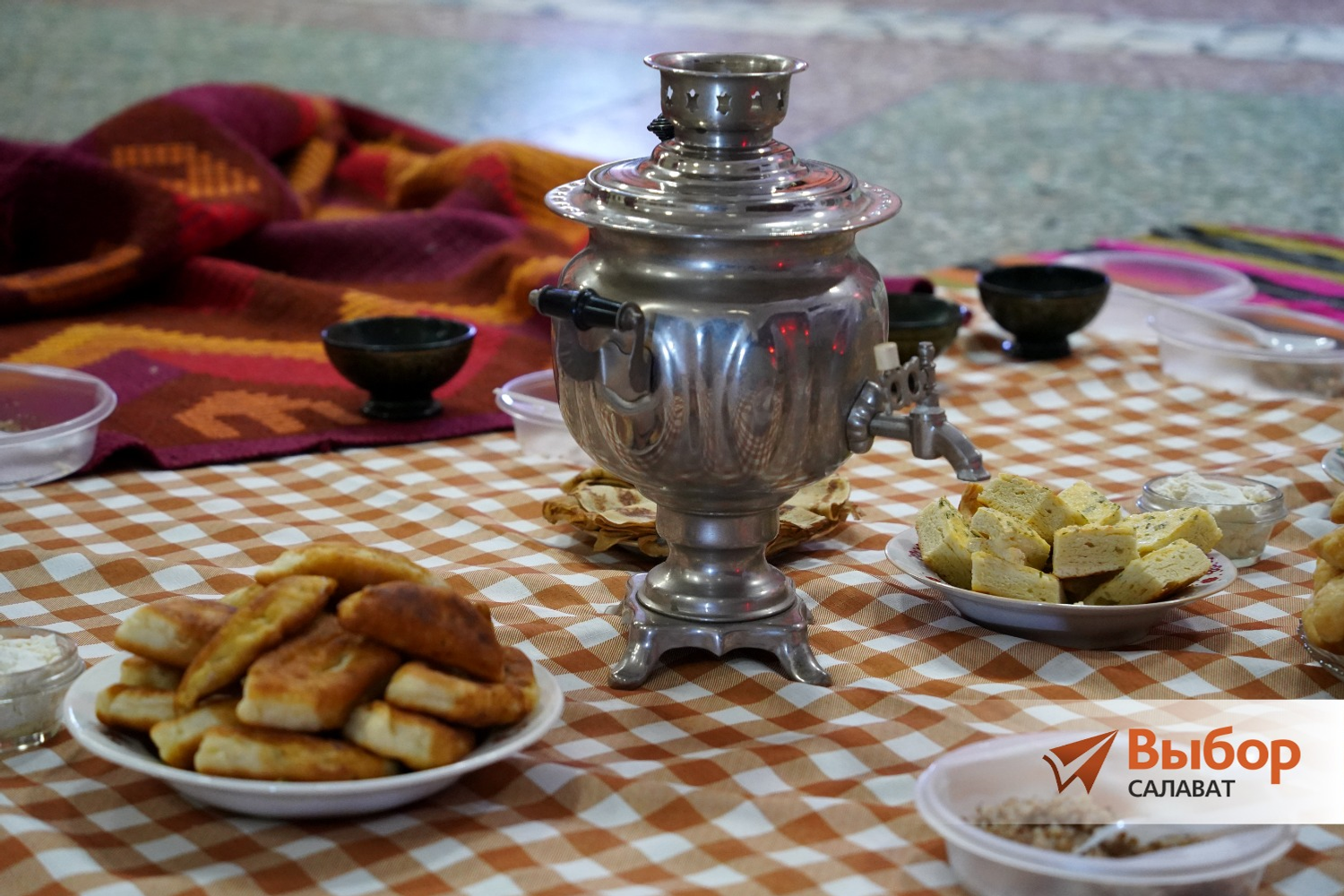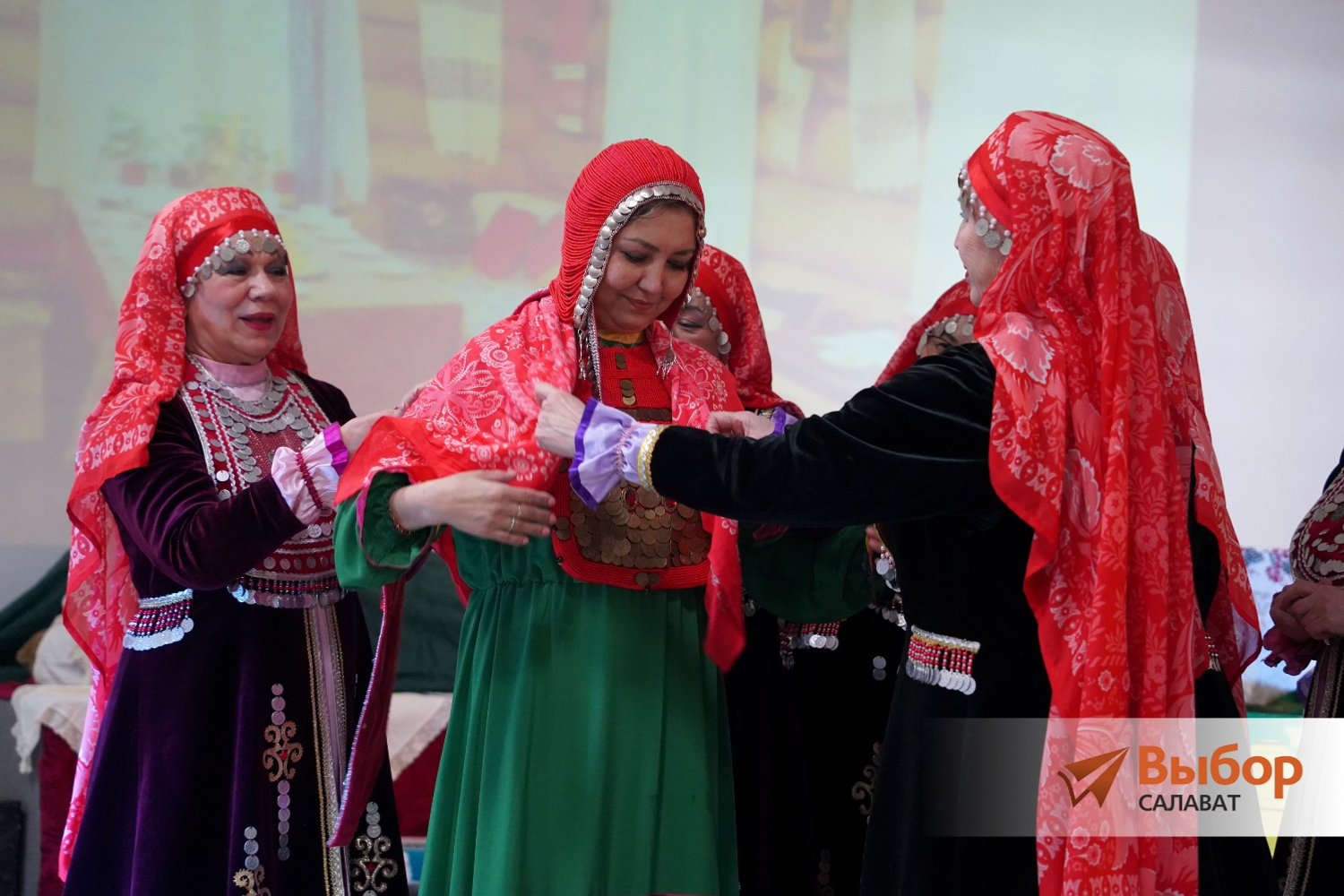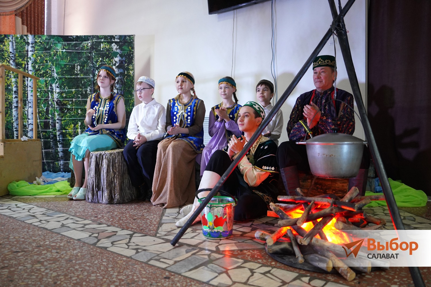 В фойе центра на втором этаже развернулась настоящая башкирская деревня. Здесь выступали артисты народного эстрадно-фольклорного ансамбля «Дуслык» (руководитель Минсара Романова), показав старинные башкирские обряды, один из них — впервые.
