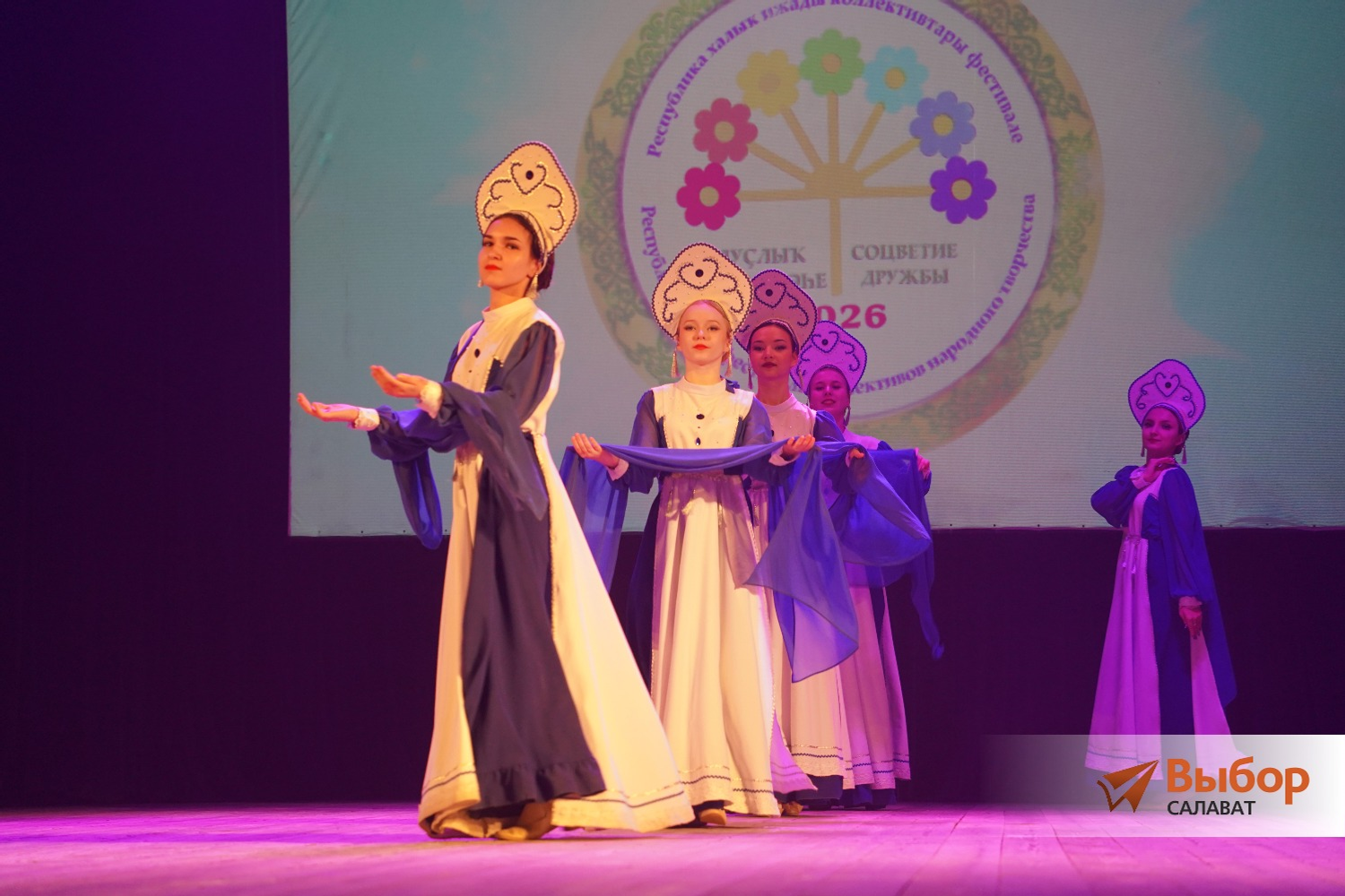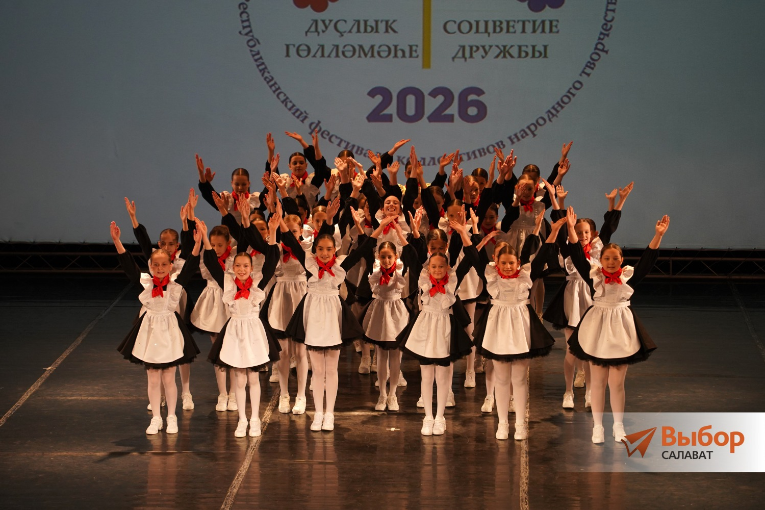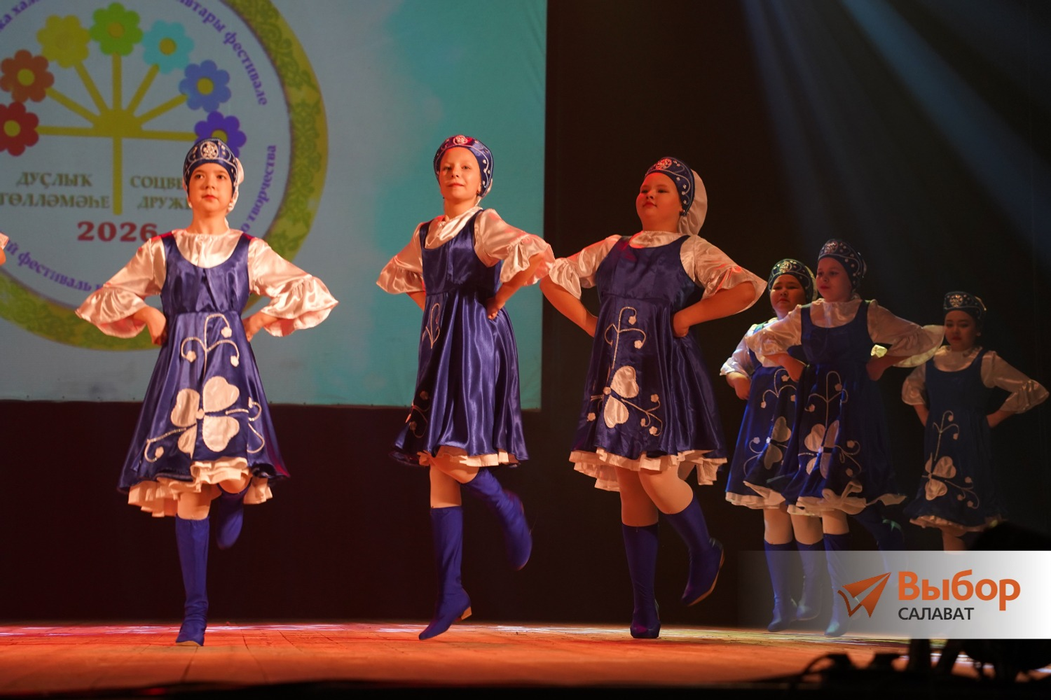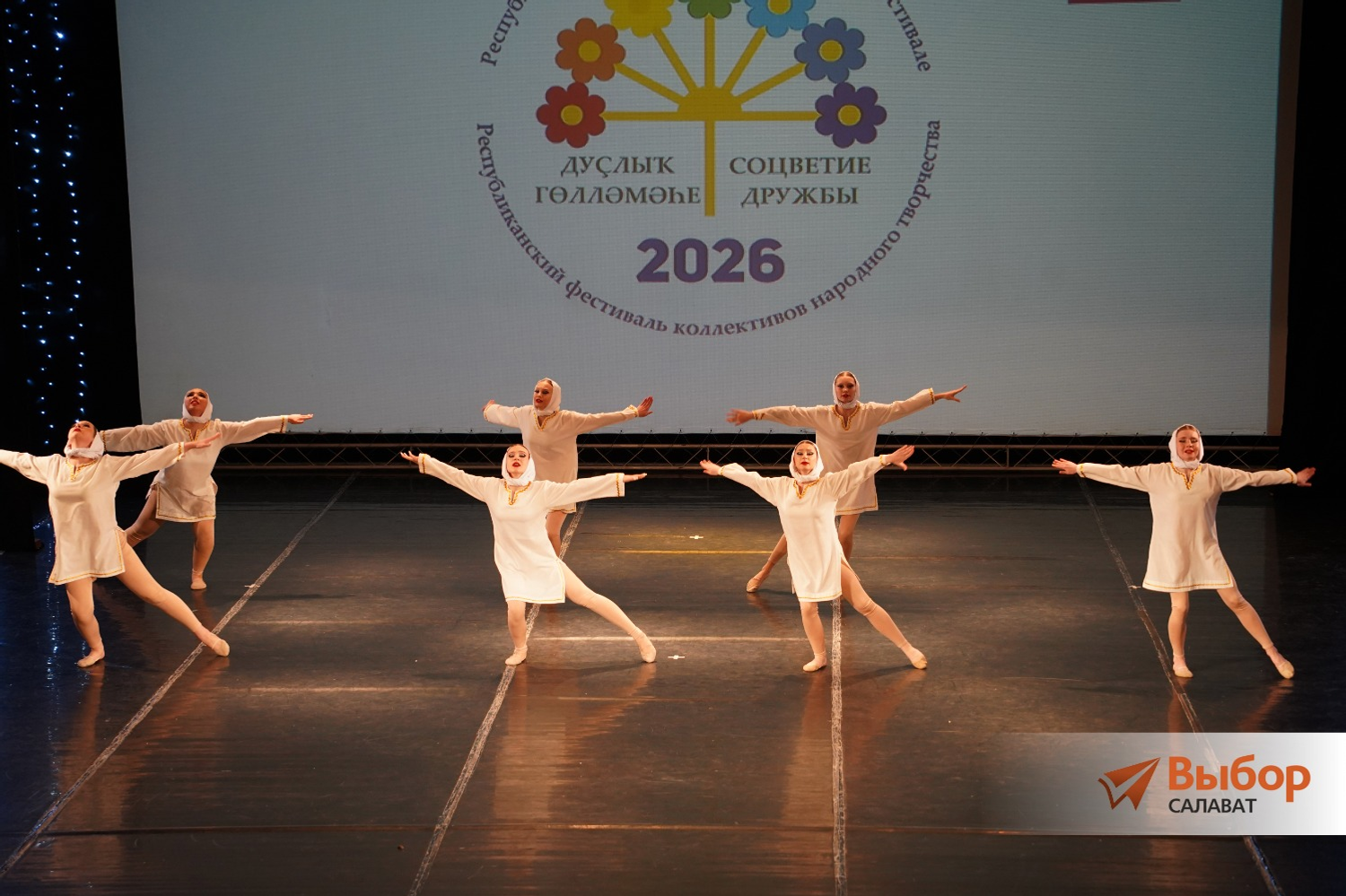 Фестивальную программу открыла школа народного танца «Самрау» (руководители Эмиль и Гульназ Суяргуловы). Юные воспитанники исполнили башкирские танцы «Наш праздник», «Гульназира» и «Сердце Башкирии», русский танец «Потешки» и калмыцкий — «Чичердык».