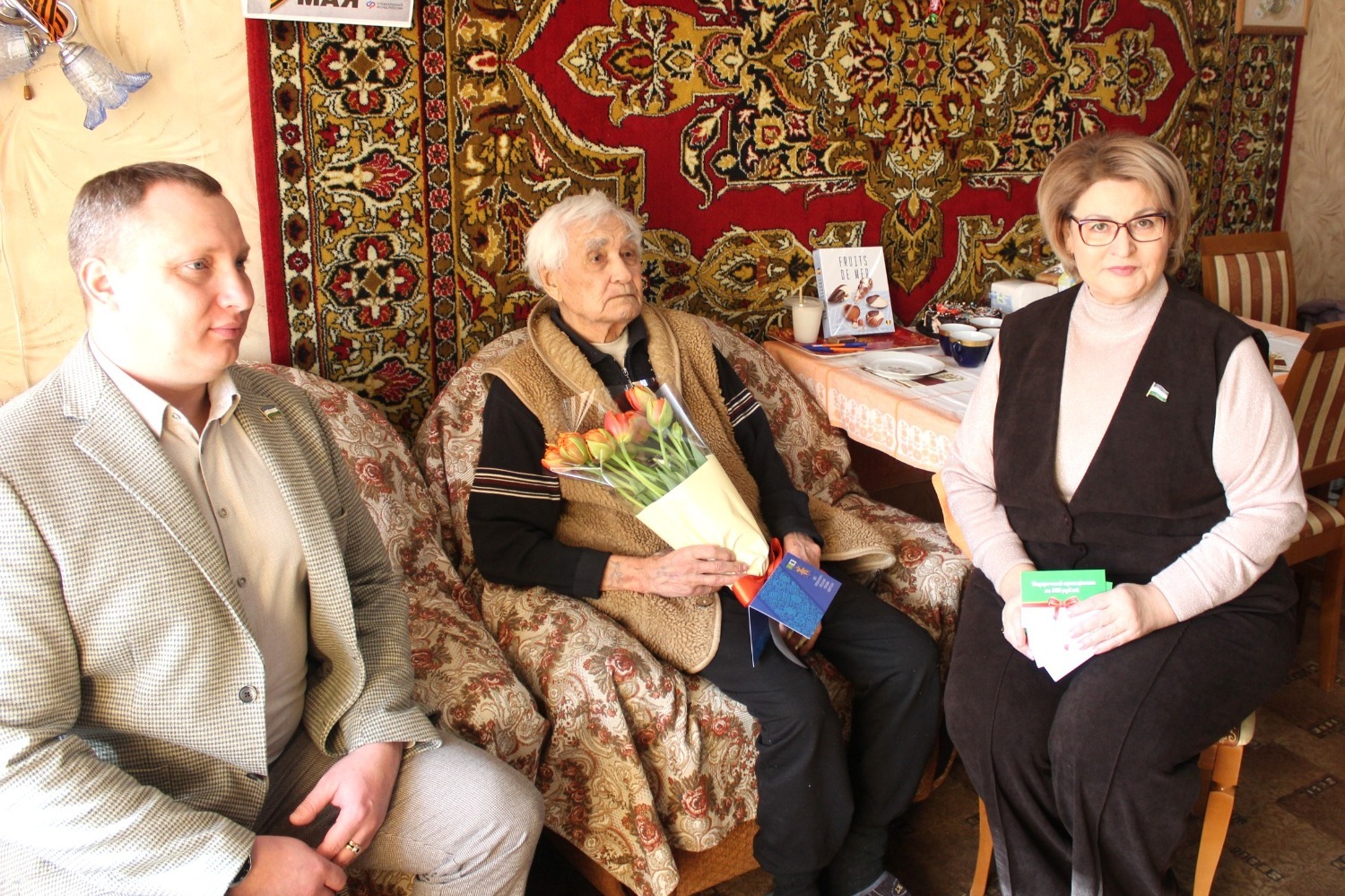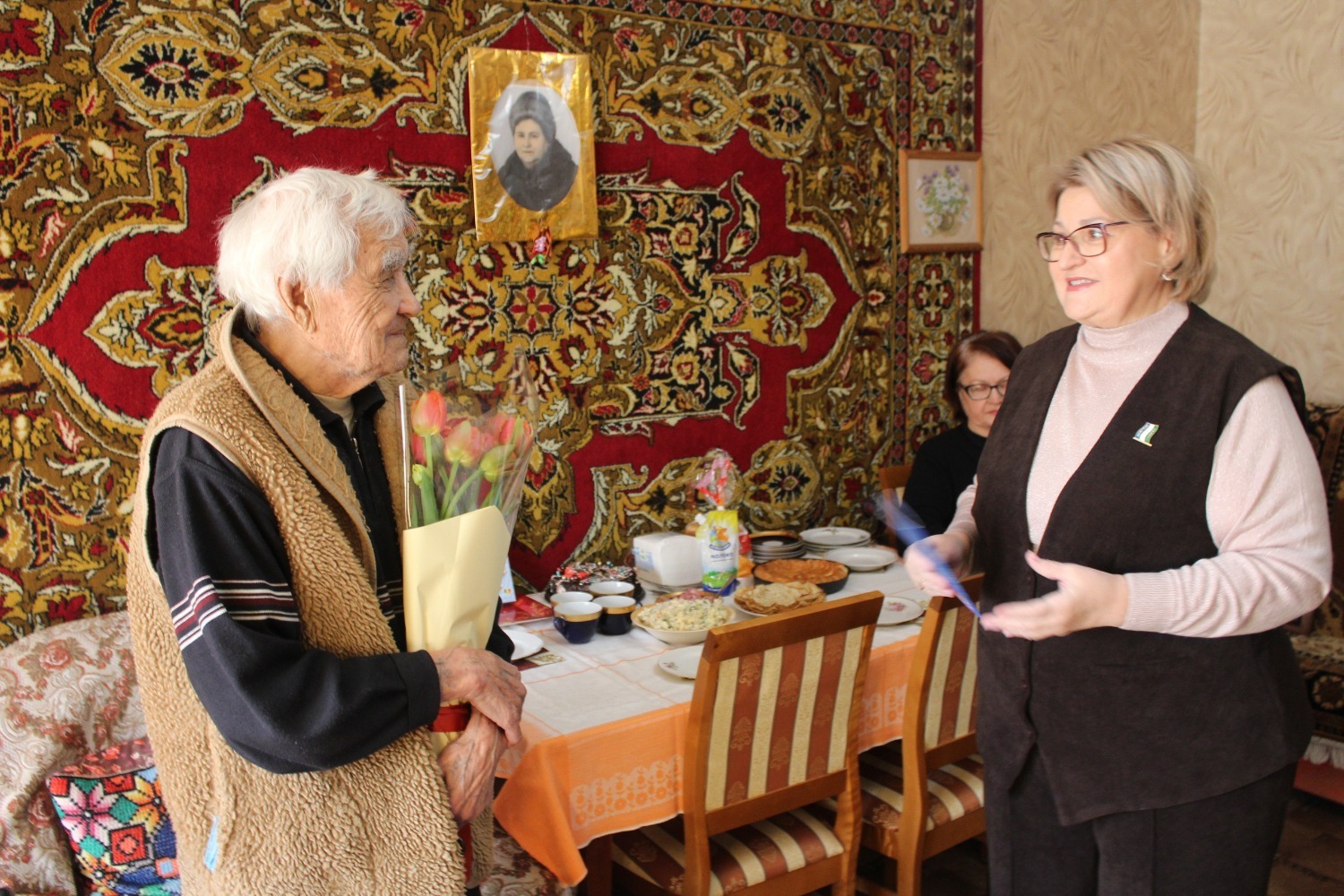Месяц назад Владимир Антонович Пискарев принимал поздравления с вековым юбилеем — и вновь на его пороге гости. С наступающим праздником Почетного гражданина Салавата поздравили депутаты Городского совета Оксана Редькина и Рафаэль Султангузин.