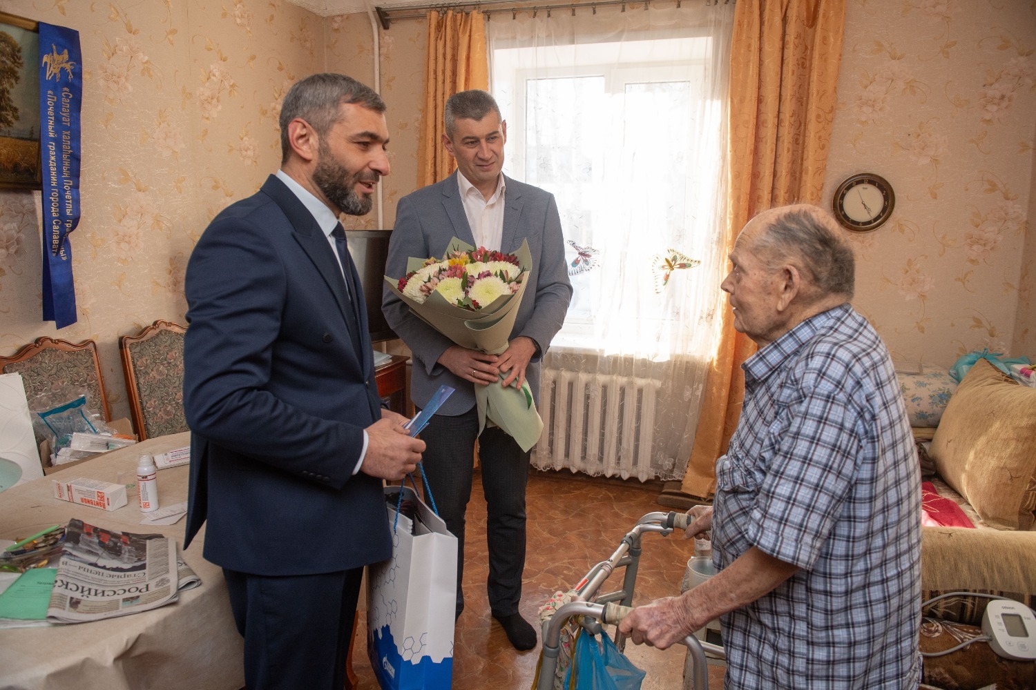 — Сергей Васильевич, вы всегда будете для нас примером стойкости и жизнелюбия. Мы очень рады возможности общаться с вами напрямую и передавать молодым поколениям вашу мудрость и ценности. Признание вас Почетным гражданином города абсолютно заслуженно. Пусть ваши дети, внуки и правнуки всегда гордятся вами и знают, что такие люди, как вы, — гордость нашего города. Желаю отличного здоровья, бодрости и прекрасного настроения. Хочется, чтобы ваши глаза всегда оставались такими же яркими и живыми. Несмотря на все испытания, выпавшие на вашу долю, вы сохранили огромную любовь к жизни и доброе сердце. Это служит для нас лучшим примером. Низкий поклон за вашу стойкость! Мы обязательно отпразднуем и сотый юбилей, — сказал Рустам Юлтимиров.