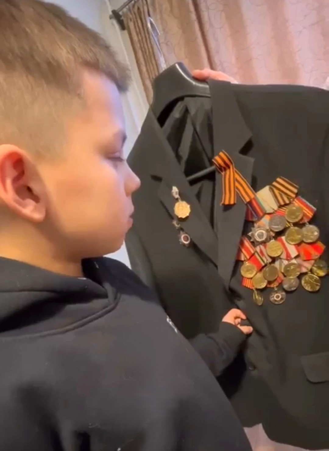 В гости к ветерану Альберт Султанов пришел с сыном Рамзаном. Пиджак ветерана с боевыми наградами, фотографии и воспоминания о войне - эту встречу мальчик запомнит.