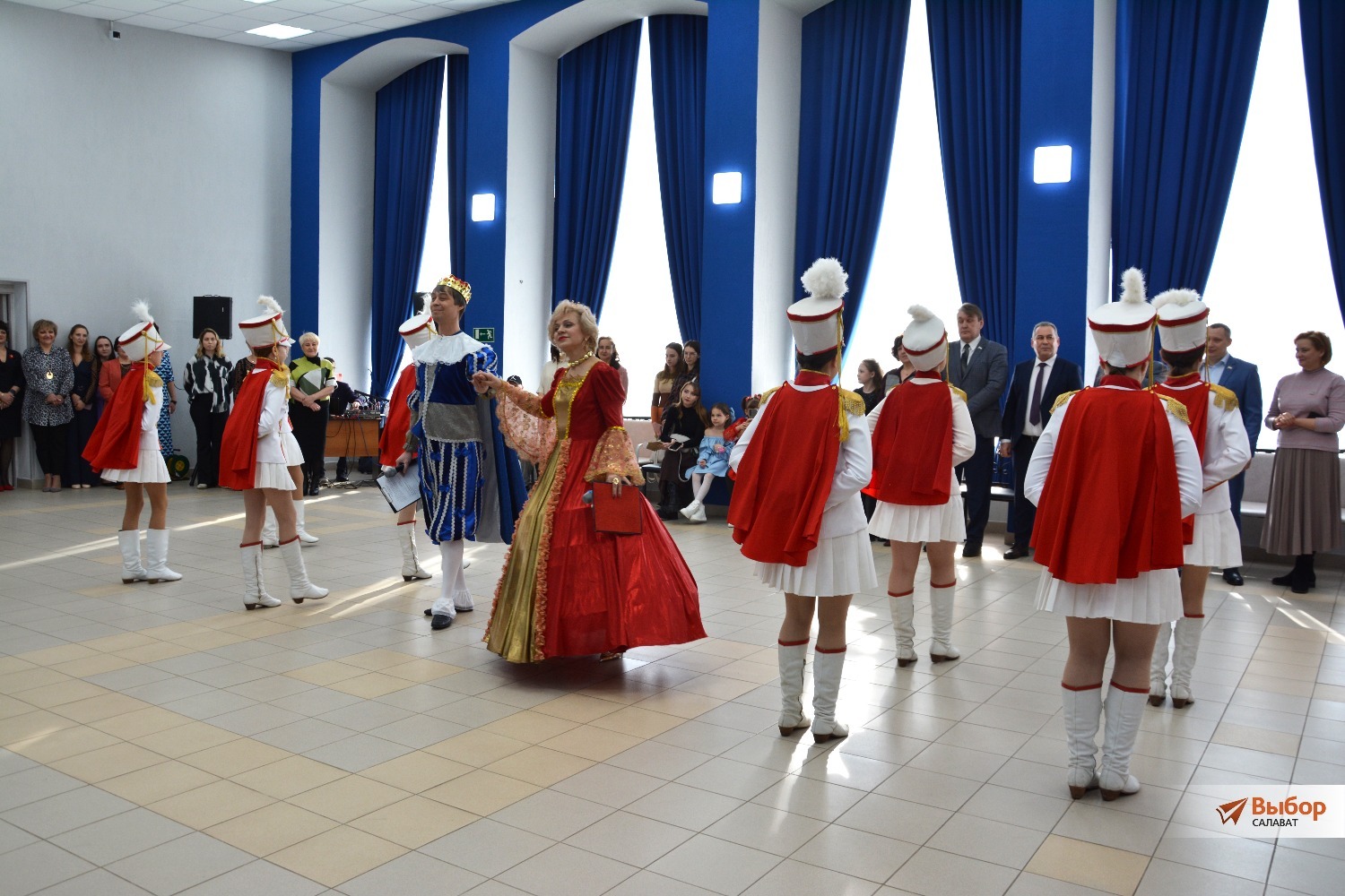 И вот настал долгожданный момент: открытие бала. Под марш мажореток в центр зала вышли Король и Королева. Ои оставались с участницами до конца торжества.