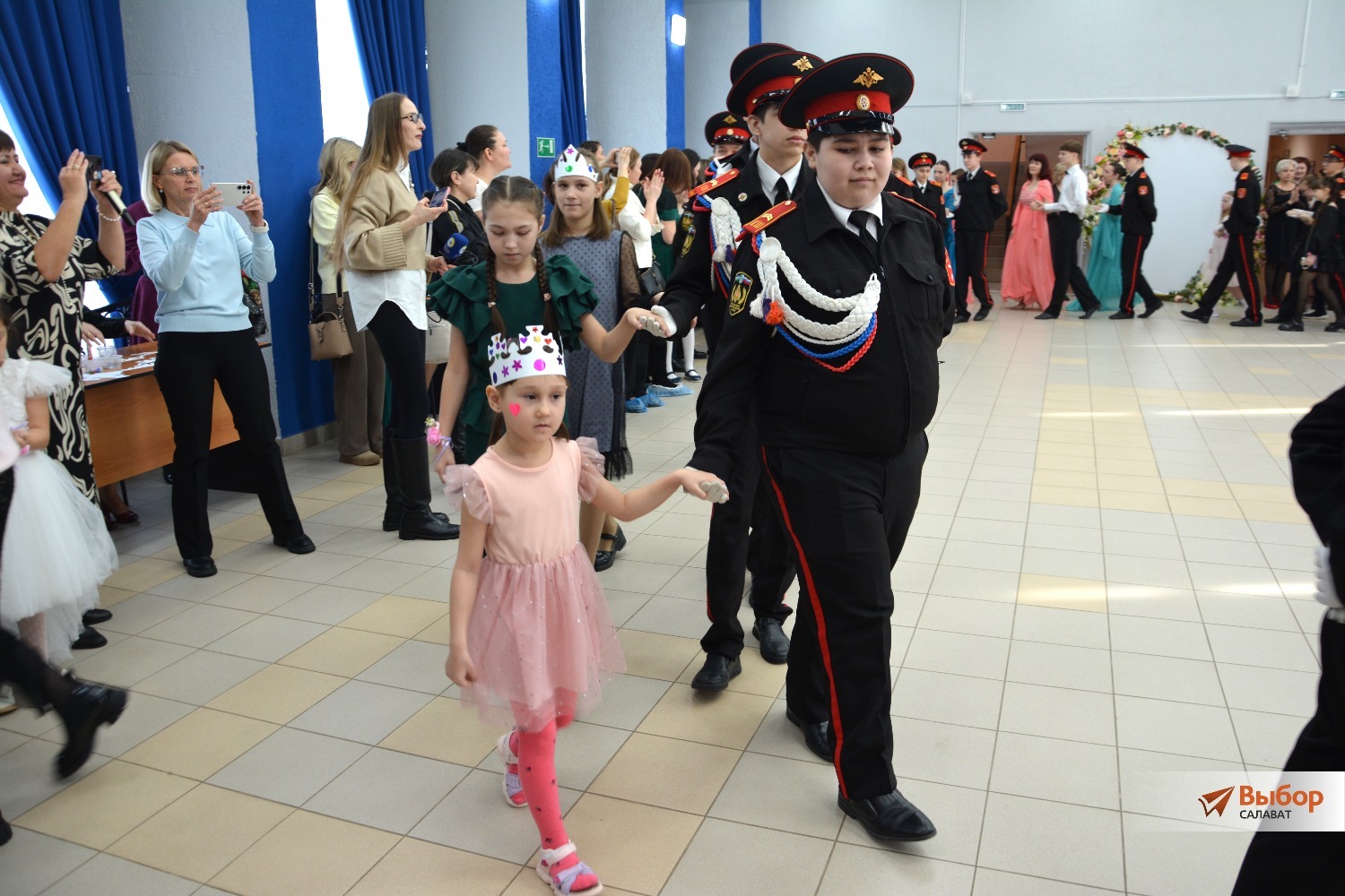 На первый в их жизни бальный танец маленьких принцесс пригласили ученики кадетской школы № 2. Девочки с удовольствием принимали приглашения, а те, кто немного стеснялся поначалу, потом всё равно присоединялись к действу, видя горящие глаза других участниц.