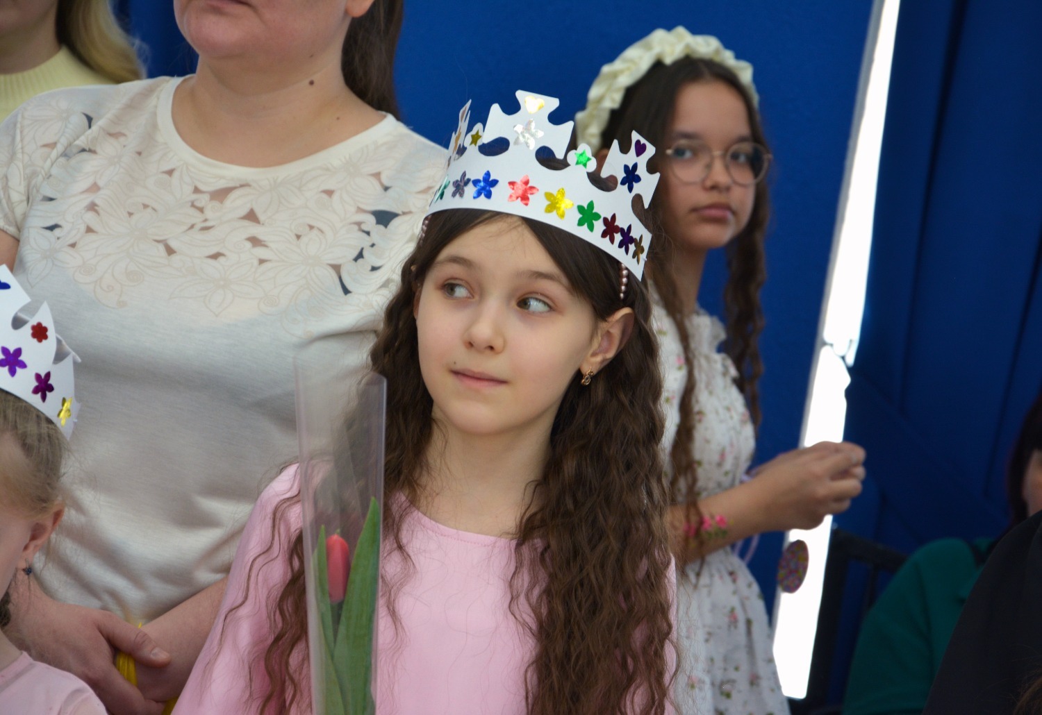 Пожалуй, самым трогательным моментом стало поздравление с 8 Марта мам участниц бала. Феи праздника принесли девочкам тюльпаны, а они вручили цветы родителям. Сами принцессы тоже не остались без подарков, подготовленных депутатами Городского совета.