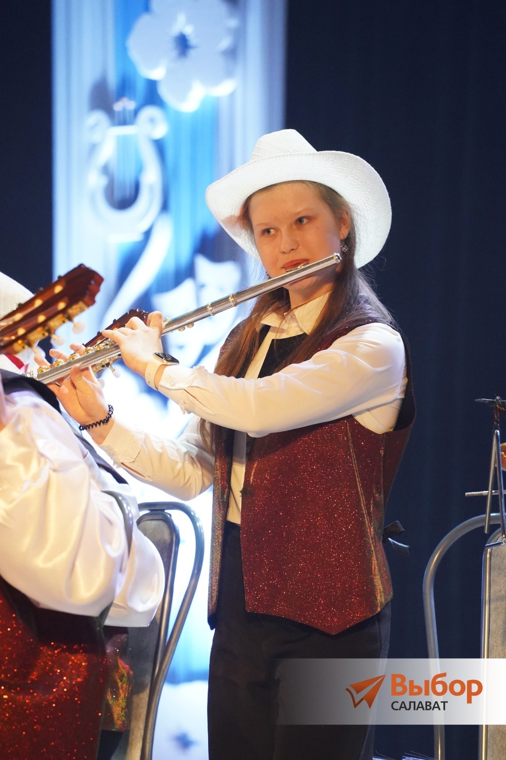 Премьера вечера — дуэт талантливых актеров «Нашего театра», которые к тому же не менее талантливые вокалисты, Андрея Германа и Ивана Южакова. Парни подарили салаватцам песню «Прости-прощай». Судя по аплодисментам, зал высоко оценил дебют.
