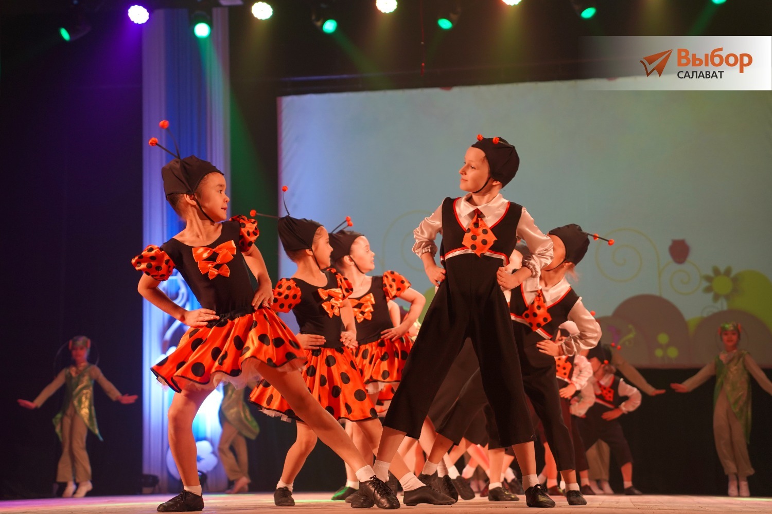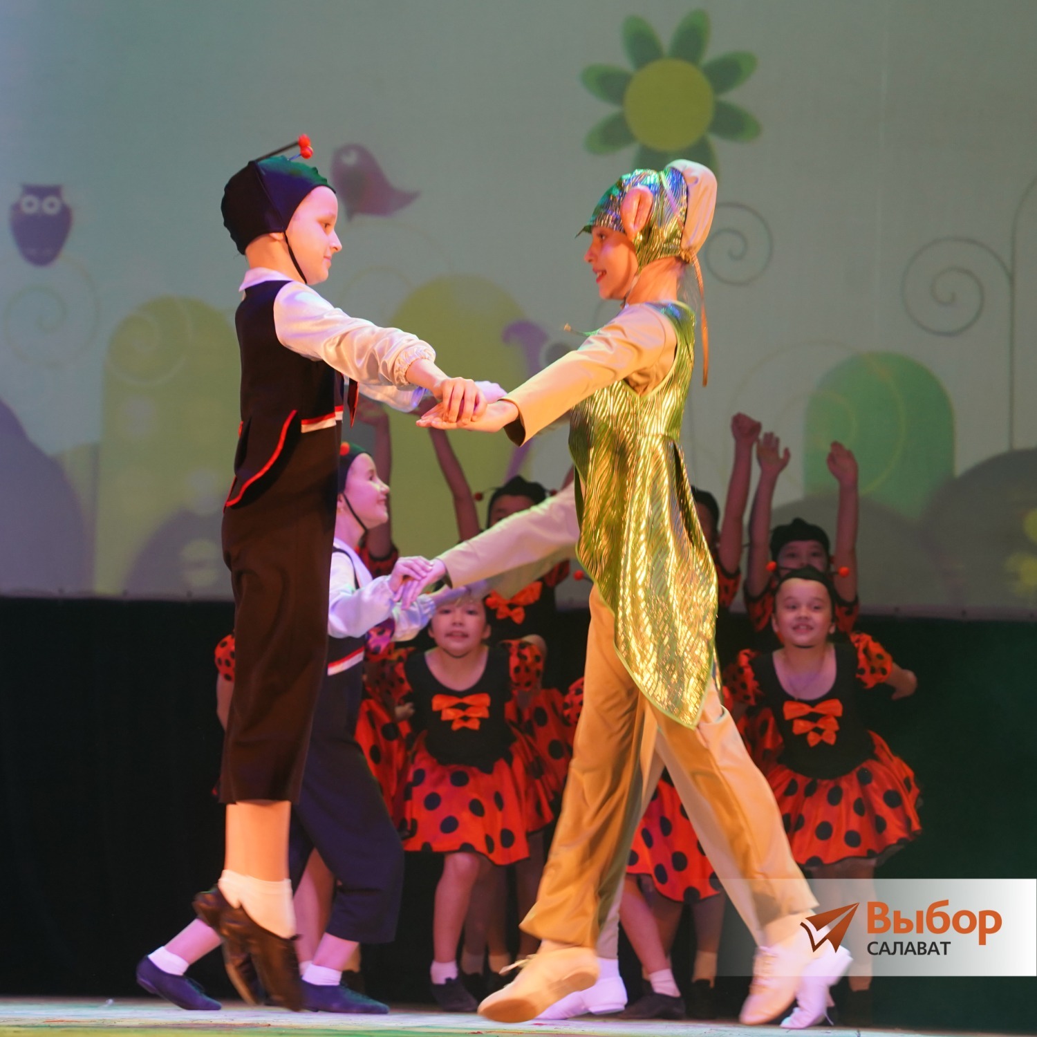Самые юные танцоры образцовой хореографической студии «Белая река» исполнили танец «Турботроники». Малыши-энерджайзеры очаровали всех: теперь у салаватцев особая любовь к божьим коровкам и кузнечикам.