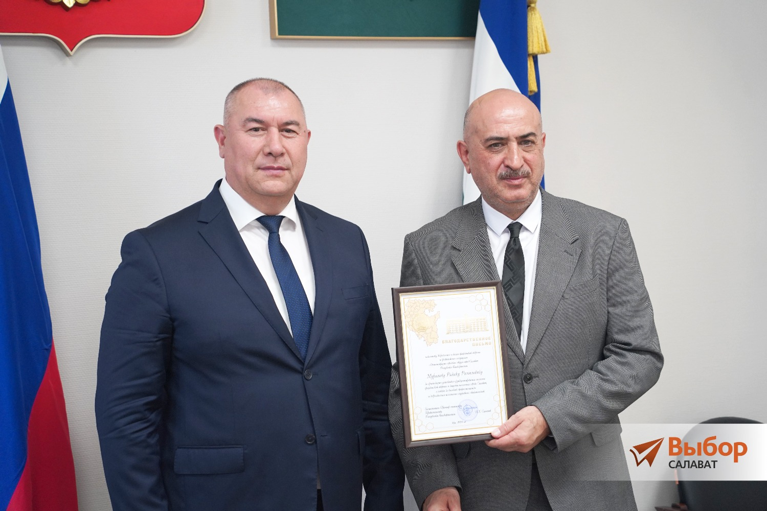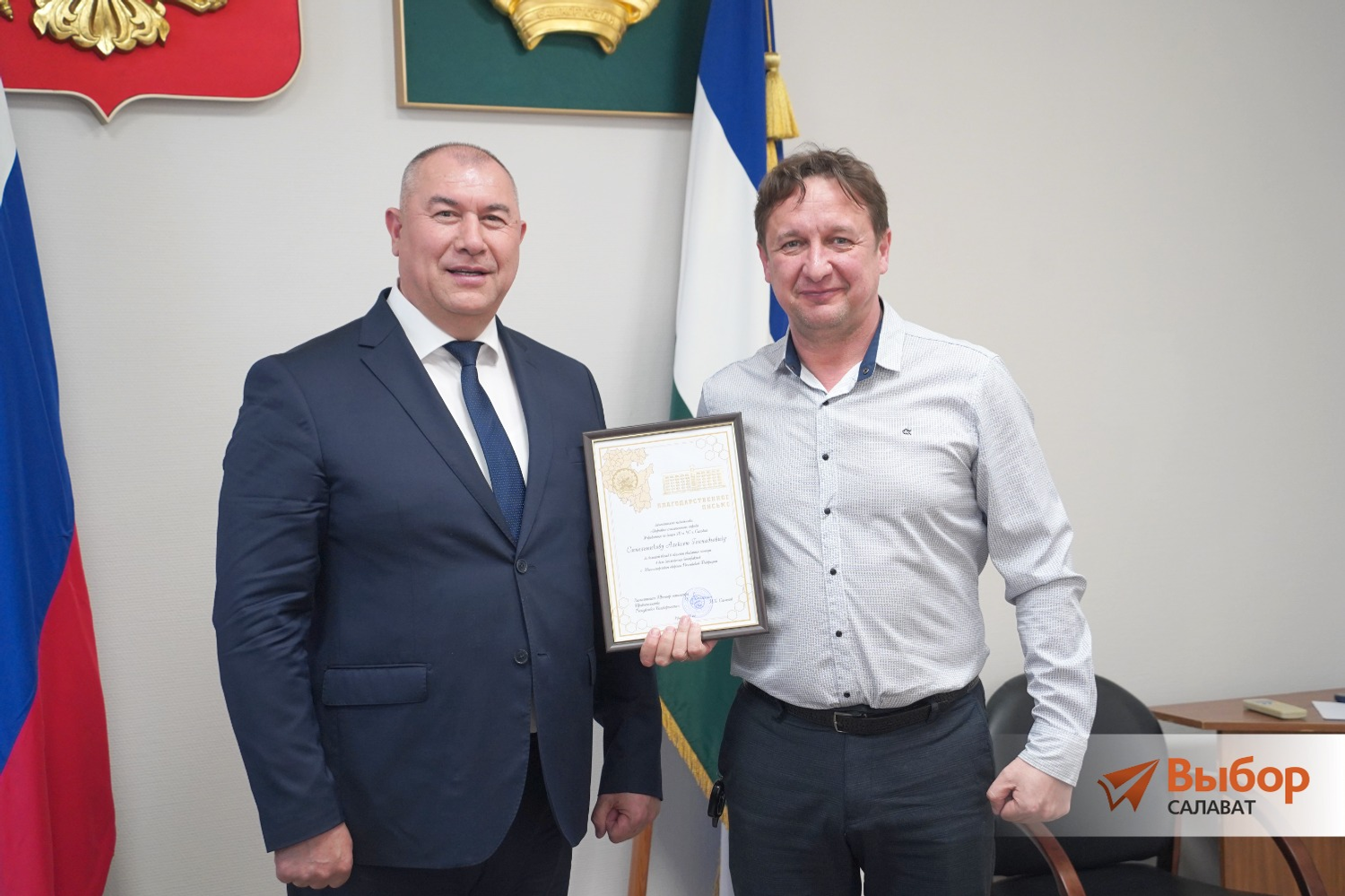 Рабочая встреча завершилась церемонией награждения. Ирек Сагитов вручил Благодарственные письма трем салаватцам.