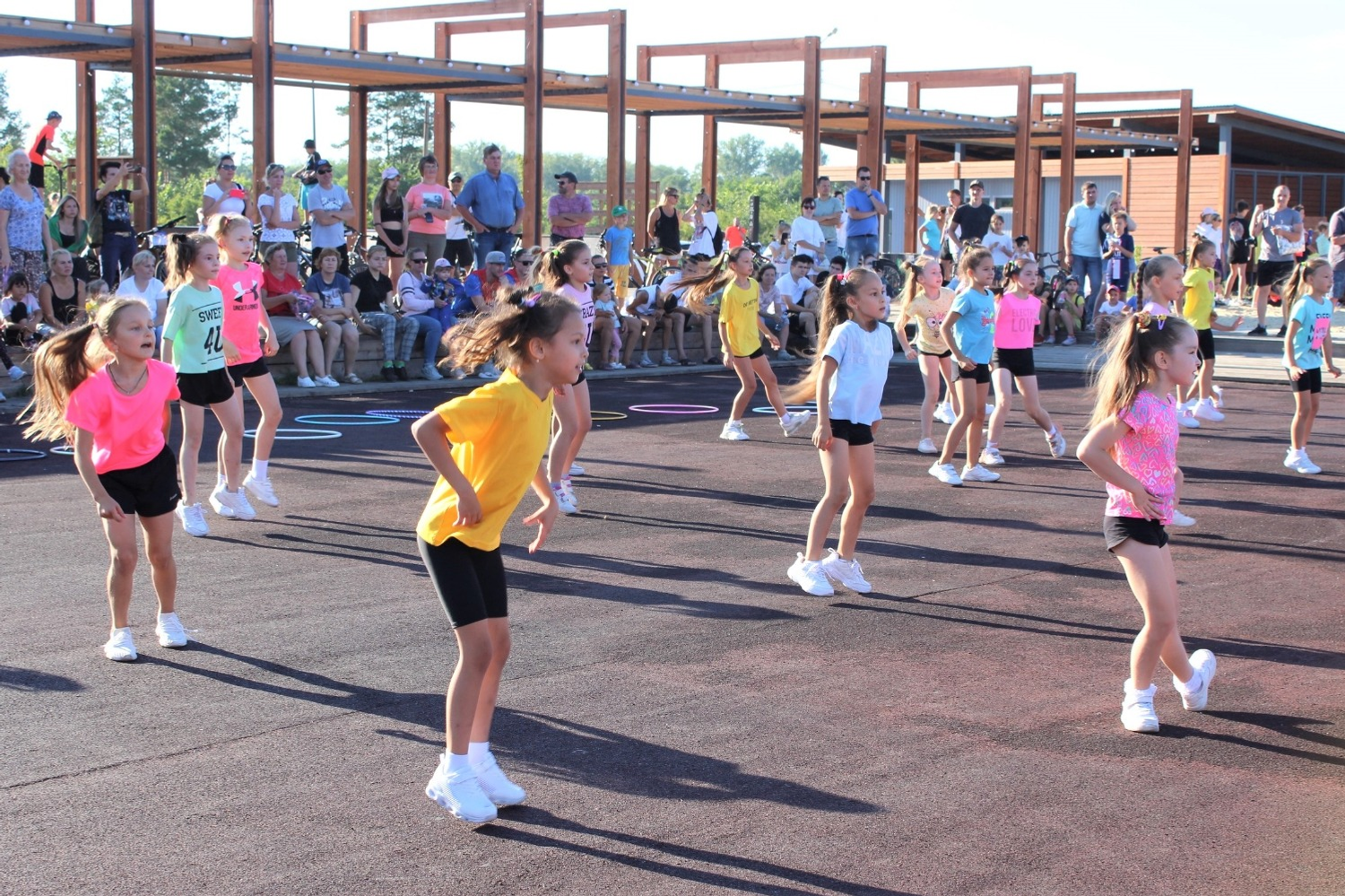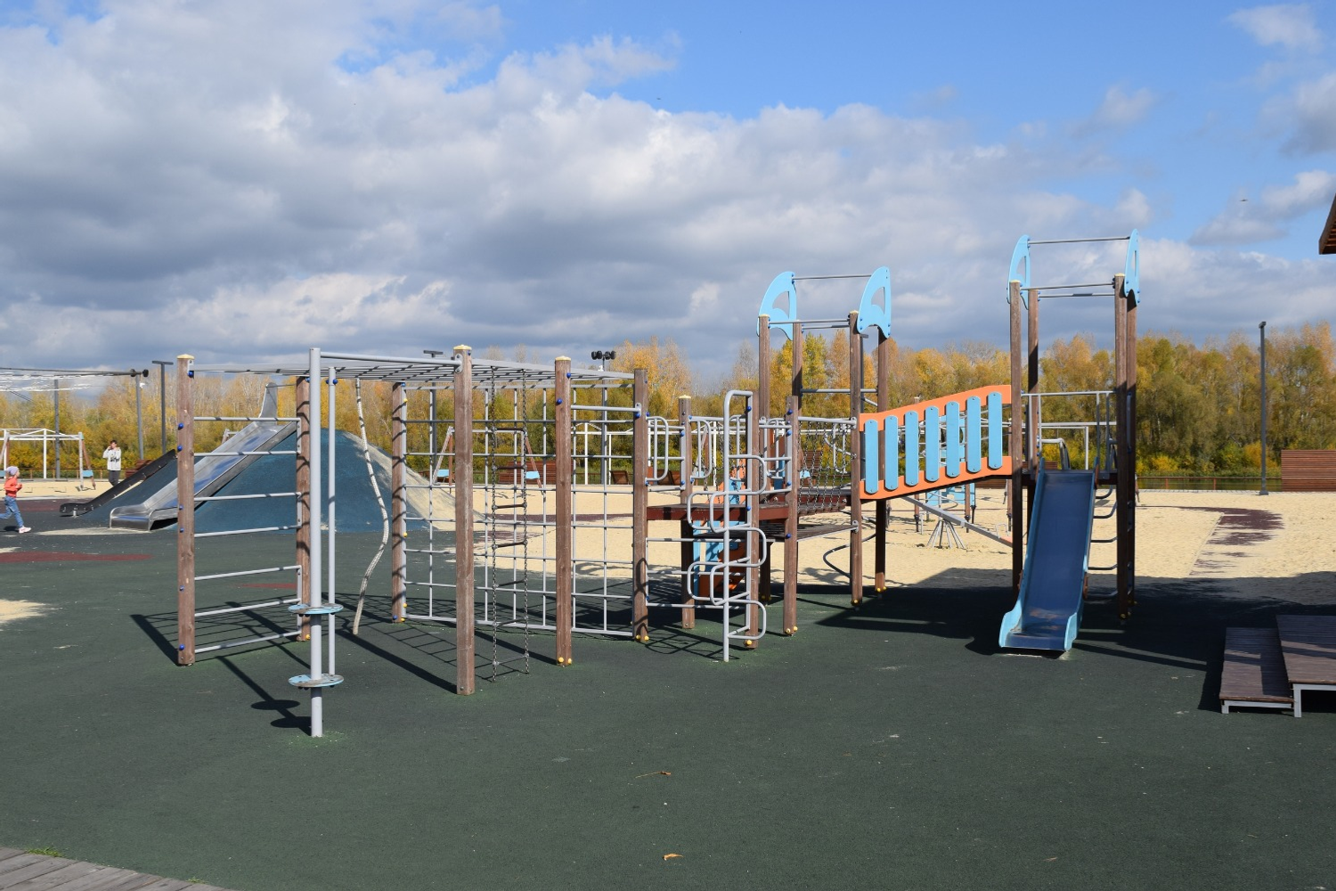 Во время первого этапа, на который выделили 129 млн рублей, оборудовали системы освещения, амфитеатр, раздевалки, павильон, беговую дорожку, выполнили озеленение, установили малые архитектурные формы, настилы из лиственницы, уложили асфальт и экобрусчатку.
