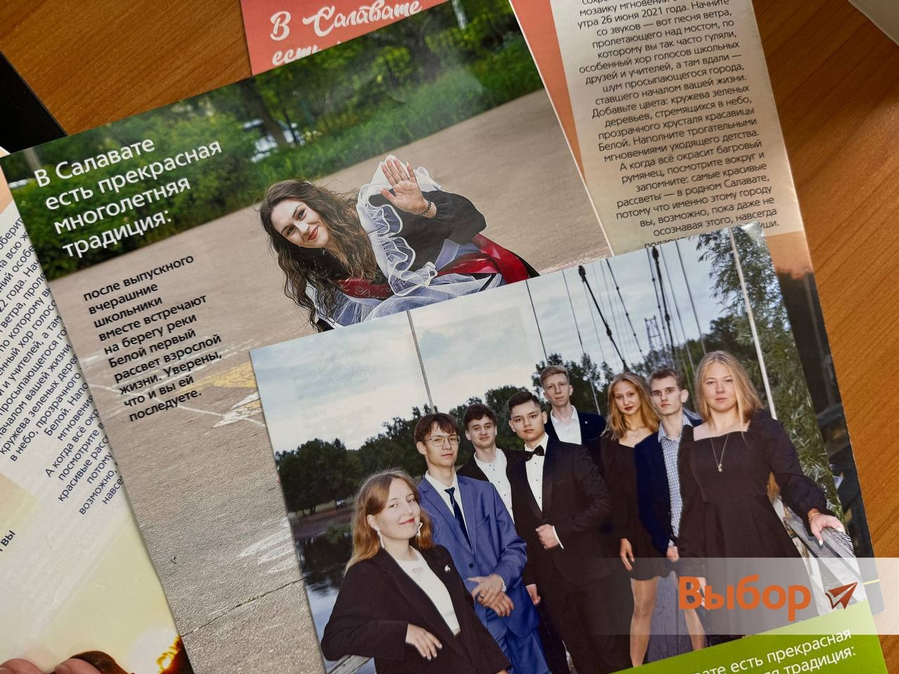 Теперь каждый год редакция газеты «Выбор» собирает лучших выпускников года на набережной в четыре утра, чтобы сделать уникальные съемки на рассвете для буклетов уникального городского проекта «Салават без границ».